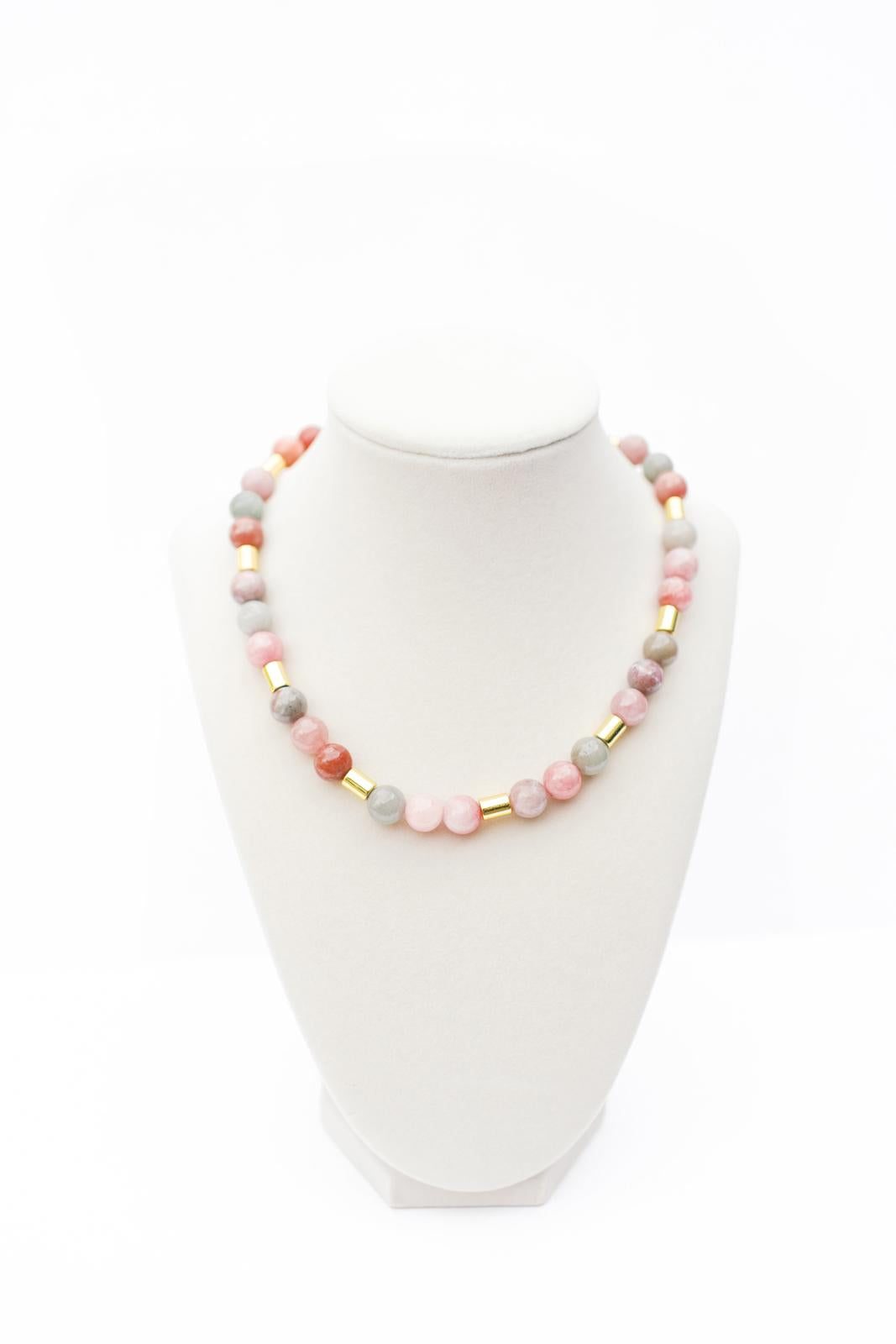 Pink and Red Quartz Candy Beaded Necklace