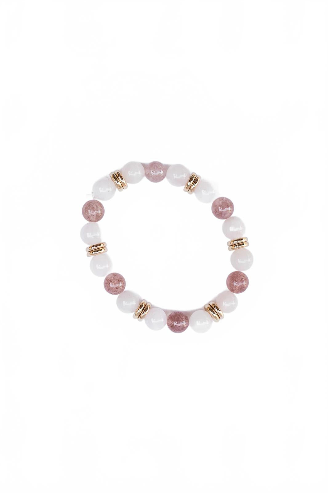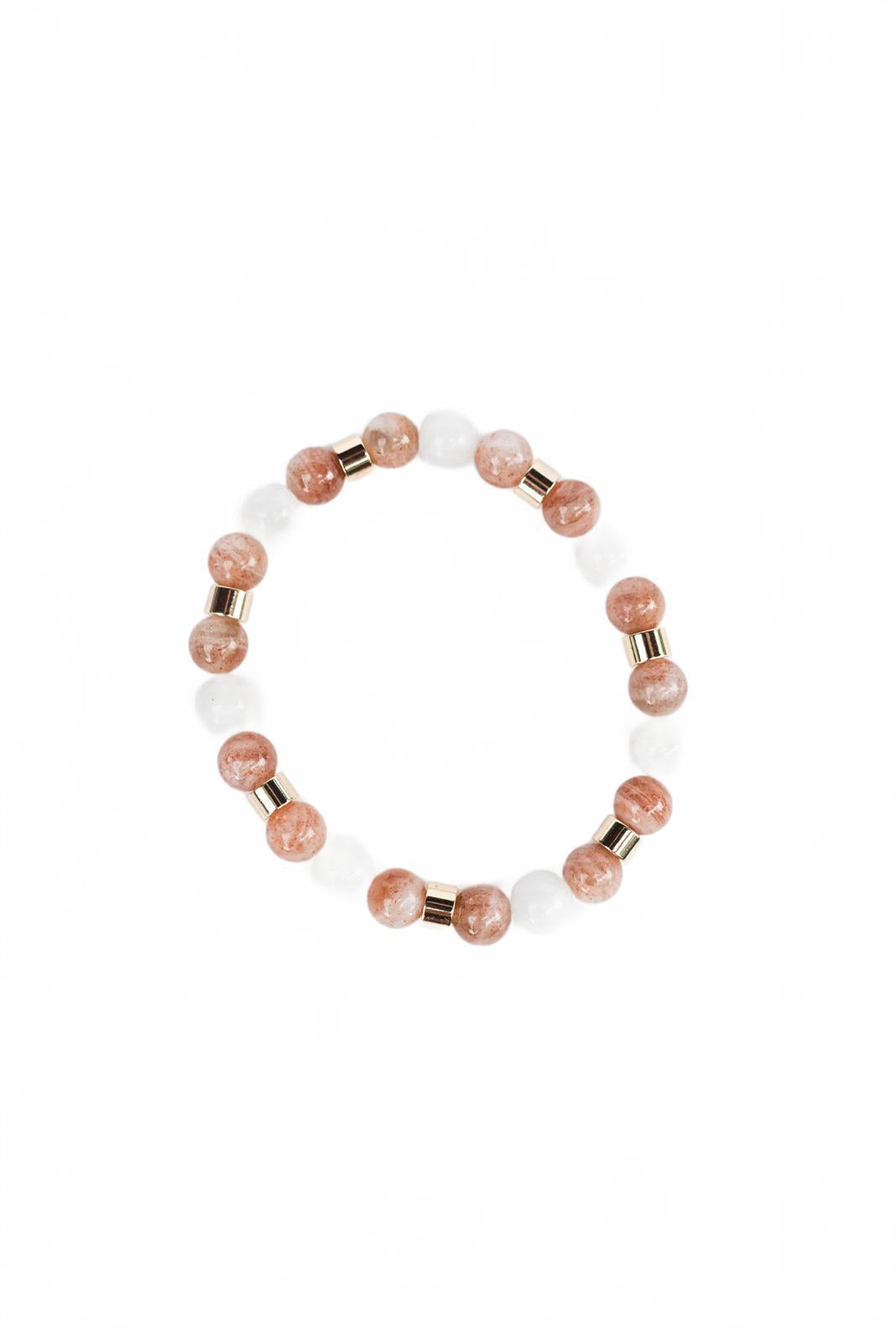 Peach and White Moonstone Beaded Bracelet